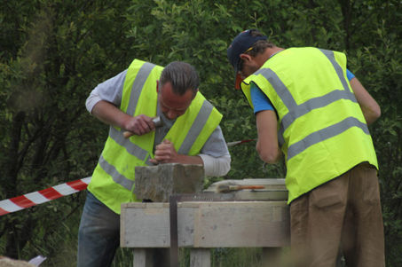 The DSWAUK also wanted to donate a stone to the project, Sean was also involved in the organisation and transportation of two stones from Wales to Lough Boora. Originally Sean was working on getting a boulder from the birthplace of Saint Patrick in Banwen (near Neath, South Wales) but when the logistics of this became impossible, he managed to find two other historic Welsh stones with an Irish connection to bring with him. These were a sleeper stone from the Ffestiniog Railway and a stone from the old Breakwater Quarry.