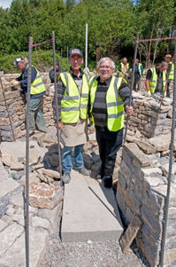 Following the end of the public event. Small groups of DSWAI dry stone wallers and volunteers would return a number of time over the next two summers to complete the internal tower, install the provincial crests and landscape the site. The project is indebted to all the volunteers from home and abroad who filled their vehicles with fuel or booked flights and made their way to the site and gave up weekends to help us complete the project.
